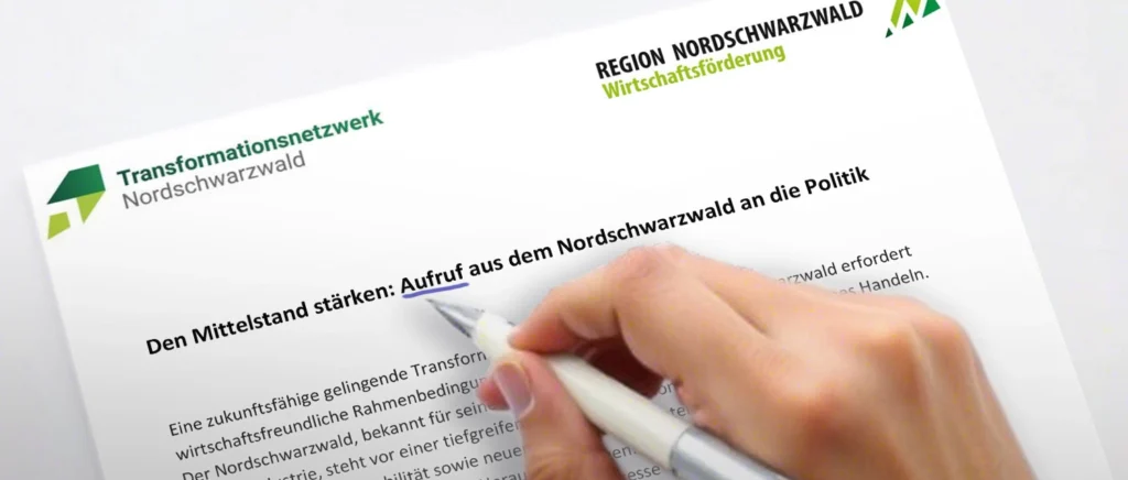 Transformationsbeirat Nordschwarzwald ruft Unternehmen auf, sich dem wichtigen Appell an die Politik anzuschließen – für eine nachhaltige Wirtschaft und starke Innovationskraft Der Transformationsbeirat Nordschwarzwald, ein zentrales Gremium des Transformationsnetzwerks (TraFoNetz) Nordschwarzwald, hat einen dringenden Aufruf an die Politik formuliert. Ziel ist es, die mittelständischen Unternehmen der Region — insbesondere die stark von der Transformation betroffenen […]