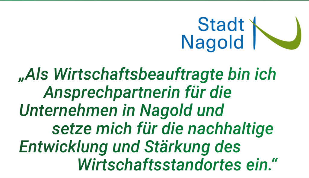 Als Wirtschaftsbeauftragte begleitet sie die Unternehmen in Nagold und arbeitet daran, unseren Wirtschaftsstandort nachhaltig zu stärken. Abseits des Schreibtischs findet man sie oft in der Natur oder im Einsatz für den Erhalt ihrer Heimat im örtlichen Verein. Und wenn am Wochenende der Ball rollt, ist sie als engagierte Unterstützerin ihrer Kinder mit voller Begeisterung am Spielfeldrand dabei.