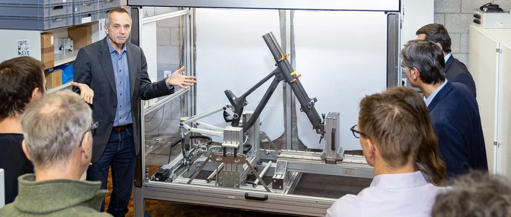 Ein Highlight war der Rundgang durch die Labore der Hochschule, bei dem die anwesenden Professorinnen und Professoren ihre Forschungsprojekte präsentierten. Zu den besichtigten Einrichtungen gehörten unter anderem das Maker Lab, das Fahrradlabor, das Laserlabor, das Kunststofflabor und das Leichtbaulabor.