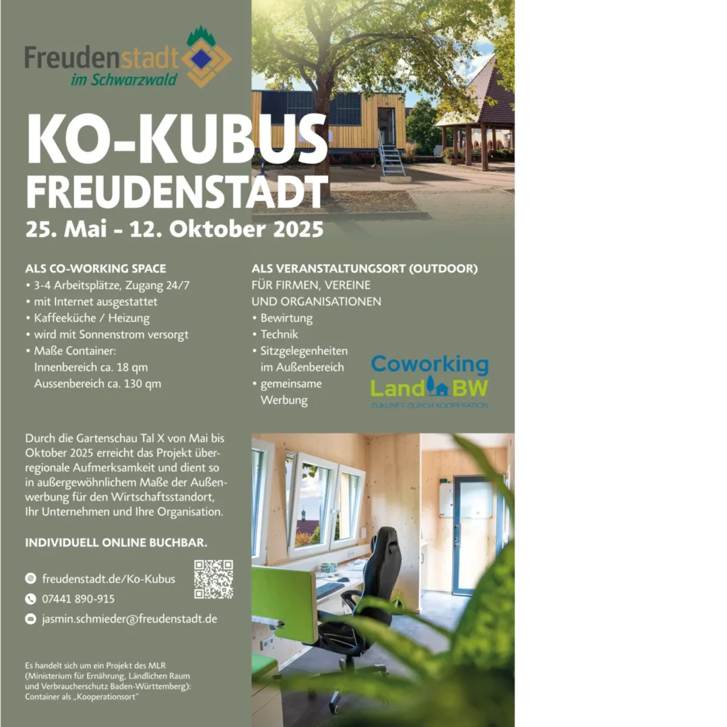 Sie möchten buchen? Unter diesem Link Ko-Kubus | Stadt Freudenstadt finden Sie unsere Buchungsangebote. Für