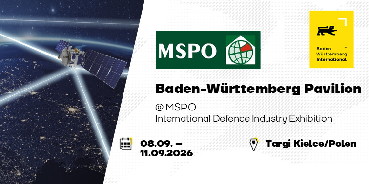 Baden-Württemberg International (BW_i) organisiert erstmals einen THE LÄND-Gemeinschaftsstand auf der MSPO in Kielce, Polen, der größten Verteidigungsmesse in Mittel- und Osteuropa. Die Messe zieht seit 1993 führende Vertreter des Militärsektors weltweit an und hat seit 2022 massiv an Bedeutung gewonnen. 2025 verzeichnete die MSPO mit über 800 Ausstellern aus 35 Ländern und 39.000 Besuchenden einen neuen Rekord.