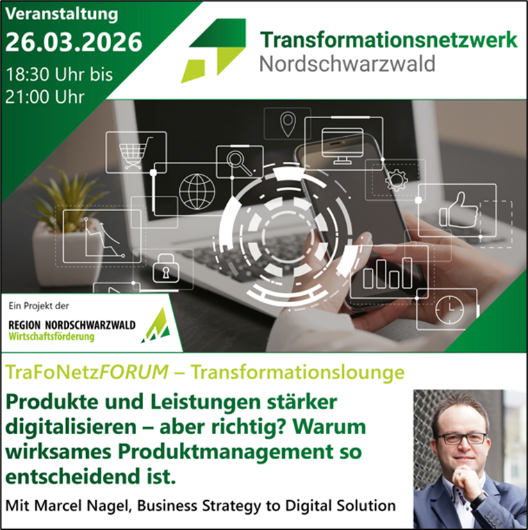 Beim Netzwerktreffen für Unternehmen in entspannter Atmosphäre erfahren Sie, wie Sie Ihr eigenens Produktmanagement durch entsprechende Stellhebel stabiler, schneller und wirksamer machen können. Digitalisierung wird dabei nicht als Selbstzweck verstanden, sondern als Mittel zur gezielten Steuerung von Portfolio, Verantwortlichkeiten und Wertschöpfung.